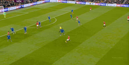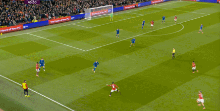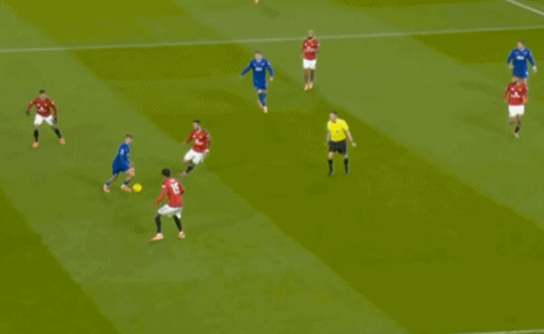 就在第二次带动球队向前之后,埃弗顿得以留在了前场,来到了又一个转折点,也就是曼联的丢球时刻。