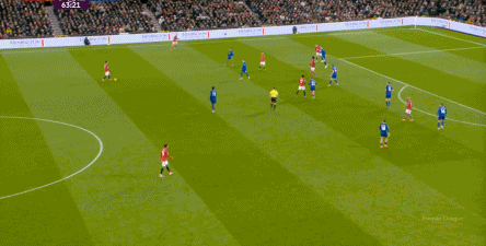 而且在红牌后的第一次进攻当中,曼联除了利用到了中场身侧的空间之外,卢克-肖也来到了前场: