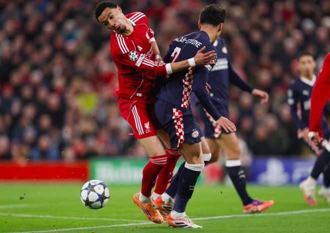 开场只有4分钟,埃因霍温获得角球,范迪克禁区内手臂高高举起,皮球打在他的手上,裁判判罚点球。范迪克疯狂向裁判解释,场边,斯洛特愣在原地,面沉似水。佩里西奇操刀主罚,稳稳命中,利物浦又一次落后了。