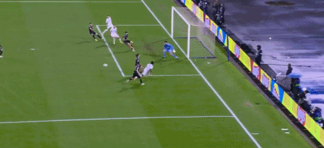 第38分钟,内雷斯倒钩射门,遭遇客队门将神扑