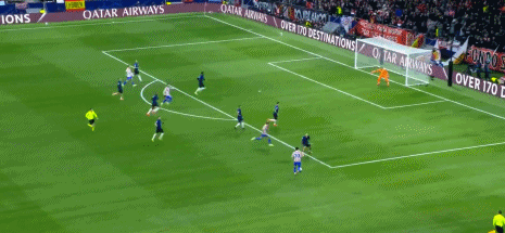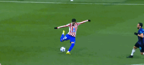 第90+3分钟,格列兹曼开出角球,希门尼斯头槌绝杀,马竞2-1