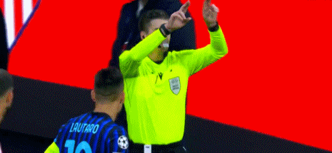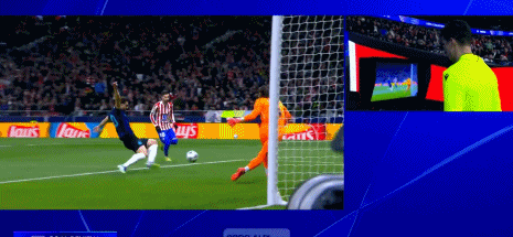 第13分钟,阿尔瓦雷斯破门,主裁观看视频回放认定进球有效,马竞1-0