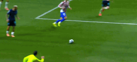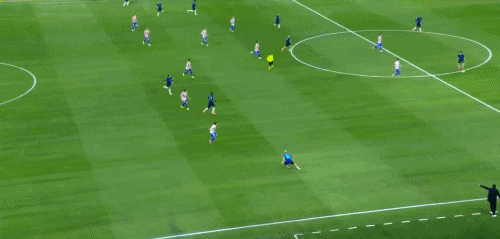 第90分钟,阿坎吉解围,皮球直接闷倒巴雷拉