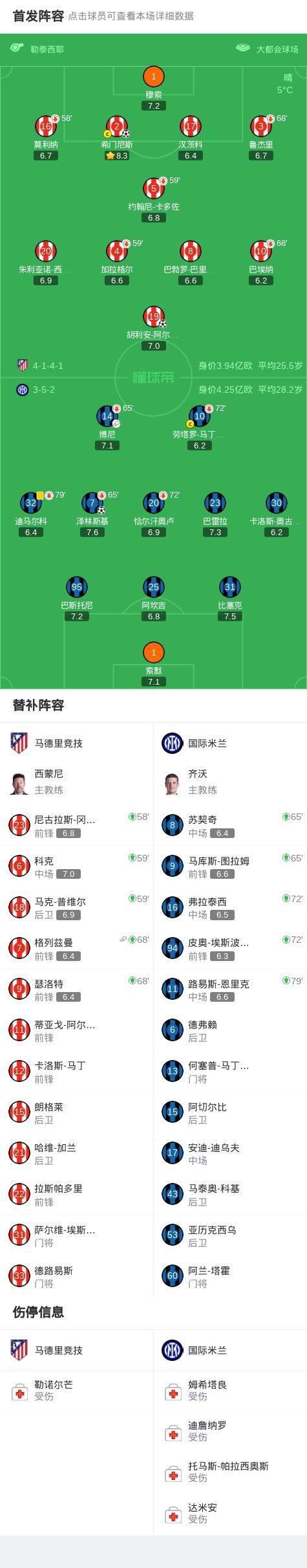 第69分钟,马竞换人,格列兹曼和瑟洛特替补登场